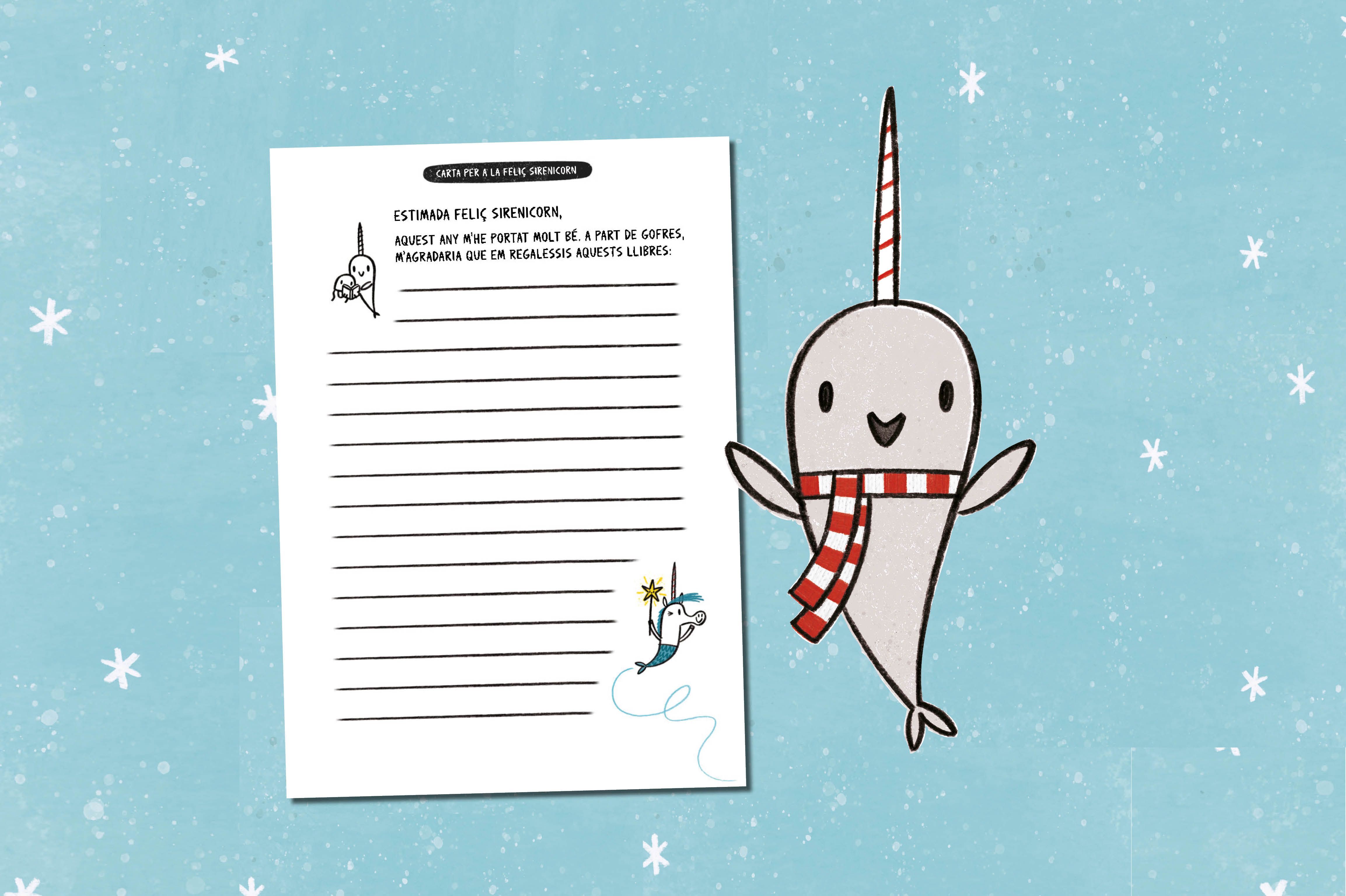 Ah! No us descuideu d’escriure una carta a la Feliç Sirenicorn amb la llista de llibres que voleu per aquestes festes. La carta també la trobareu al kit, però podeu descarregar-la directament aquí:
